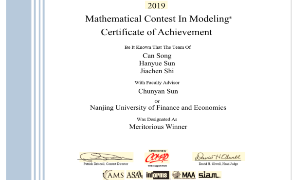 我校学子在2019年美国大学生数学建模竞赛中获佳绩
