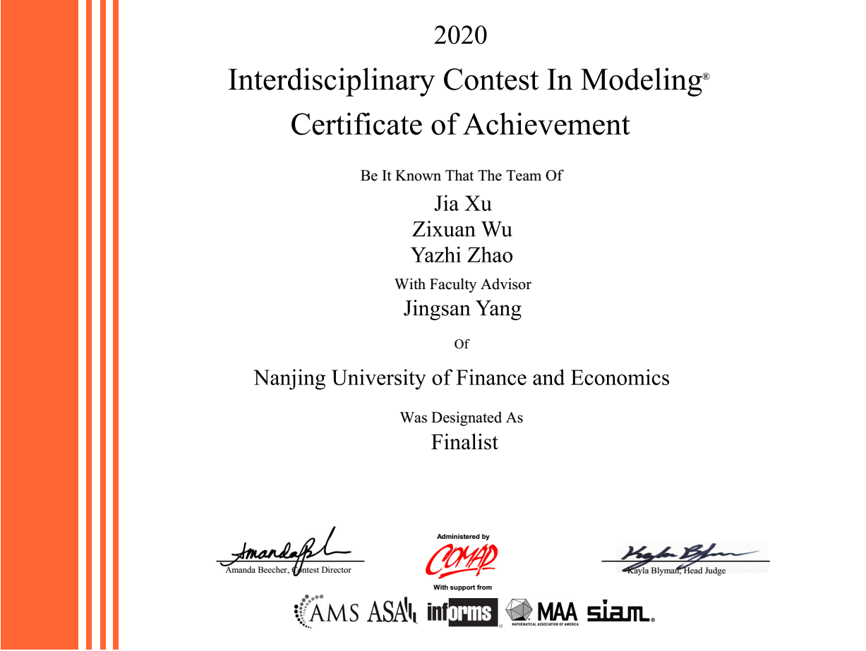 我校学子在2020年美国大学生数学建模竞赛中获优异成绩